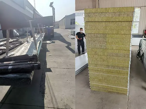 2. Теплоізоляція: Основний матеріал посередині кольорової сталевої пластини має низьку теплопровідність та хороші показники теплоізоляції, що допомагає зменшити споживання енергії будівлі.