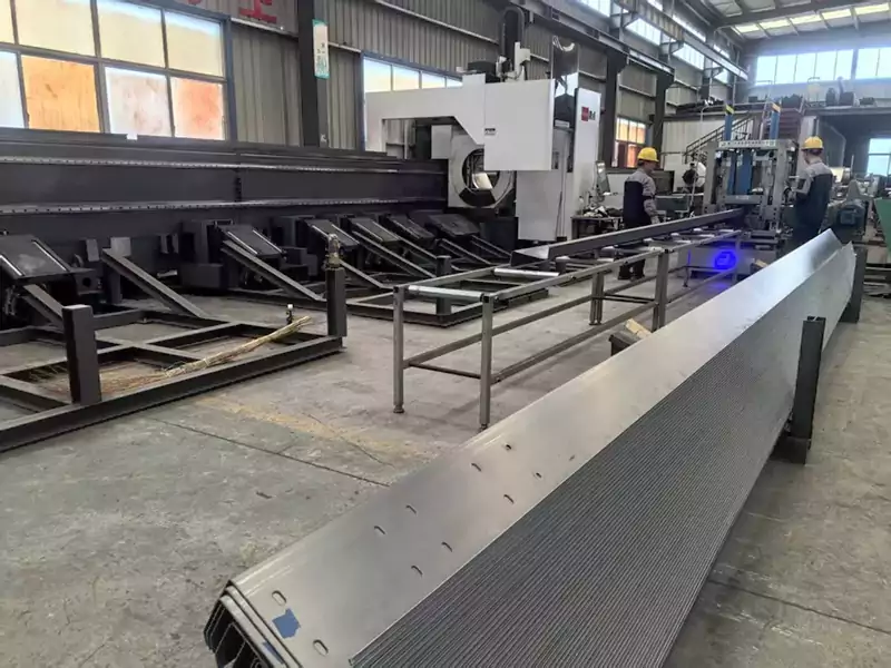 2. Штамповка: оснащений штампуючим блоком з ЧПК, він підтримує багатокутне штампування перетинок і фланців з допуском на діаметр отвору ±0,2 мм і точністю між отворами ±0,3 мм. Він також може одночасно виробляти отвори, що відповідають стандартним шаблонам сталевого з’єднання C-прорізу США (наприклад, отвори для адаптера Simpson Strong-Tie).