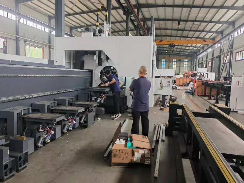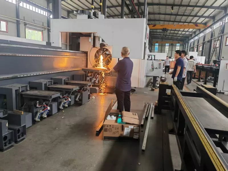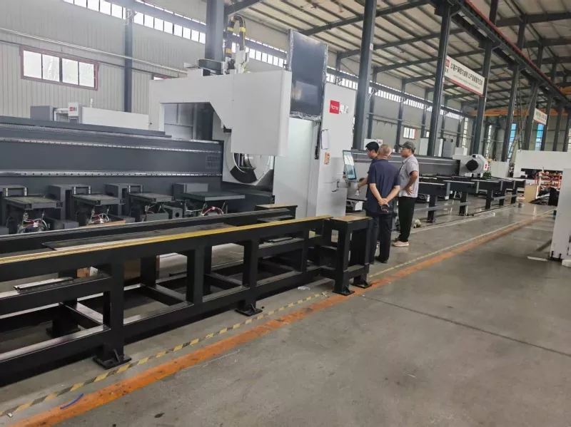 1 червня 2025 року лідери Циндао Лівейюан приїхали до Шаньдун Джинан Дінгдіанського обладнання CNC Co., ТОВ провести на місці огляд нещодавно вкладеного у виробниче масштабне обладнання для різання лазерної трубки. Розуміння продуктивності, експлуатації та технічних переваг обладнання, ця перевірка не лише сприяла інноваціям виробничих технологій та оновленням обладнання продукції сталевої структури компанії, але й вводили новий імпульс у розробку нашої компанії.