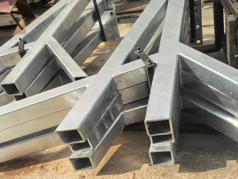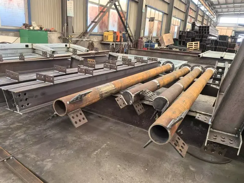Сталь зближується на переробному заводі відповідно до креслень проектування шляхом різання, зварювання, буріння тощо для виготовлення різних компонентів, таких як сталеві промені, сталеві колони, пурліни тощо. Під час конструкційного процесу стандарти технології обробки суворо реалізуються для забезпечення розміру компонентів. Наприклад, при виготовленні сталевих балків зазор між фланцевою пластиною та веб -пластиною, якістю зварювання тощо повинен відповідати вимогам специфікацій. Оброблені компоненти пронумеровані та позначені для легкого транспортування та складання на місці.