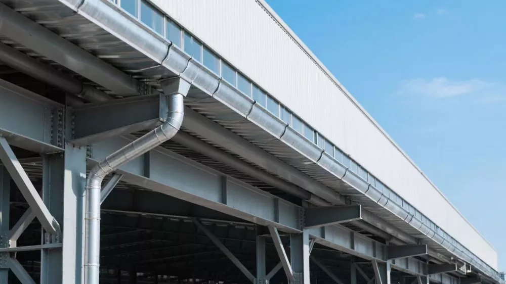 Наші водосточні жолоби для сталевих конструкцій використовують кутові сталеві кронштейни для кріплення до карнизних балок або прогонів сталевих конструкцій. Відстань між кронштейнами становить 600-1000 мм, щоб забезпечити рівномірний розподіл напруги по ринві.